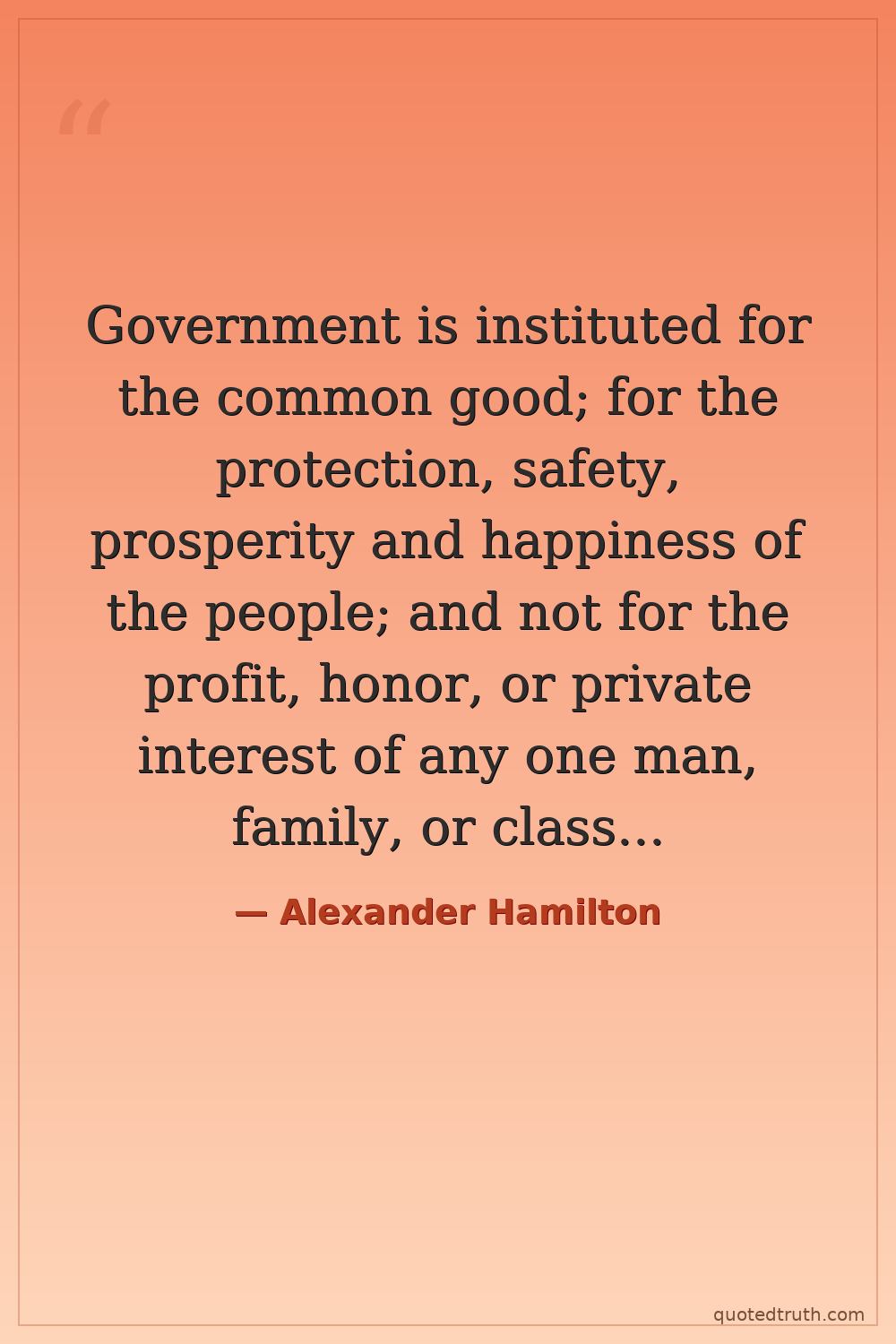Government is instituted for the common good; for the protection, safety, prosperity and happiness of the people; and not for the profit, honor, or private interest of any one man, family, or class of men.