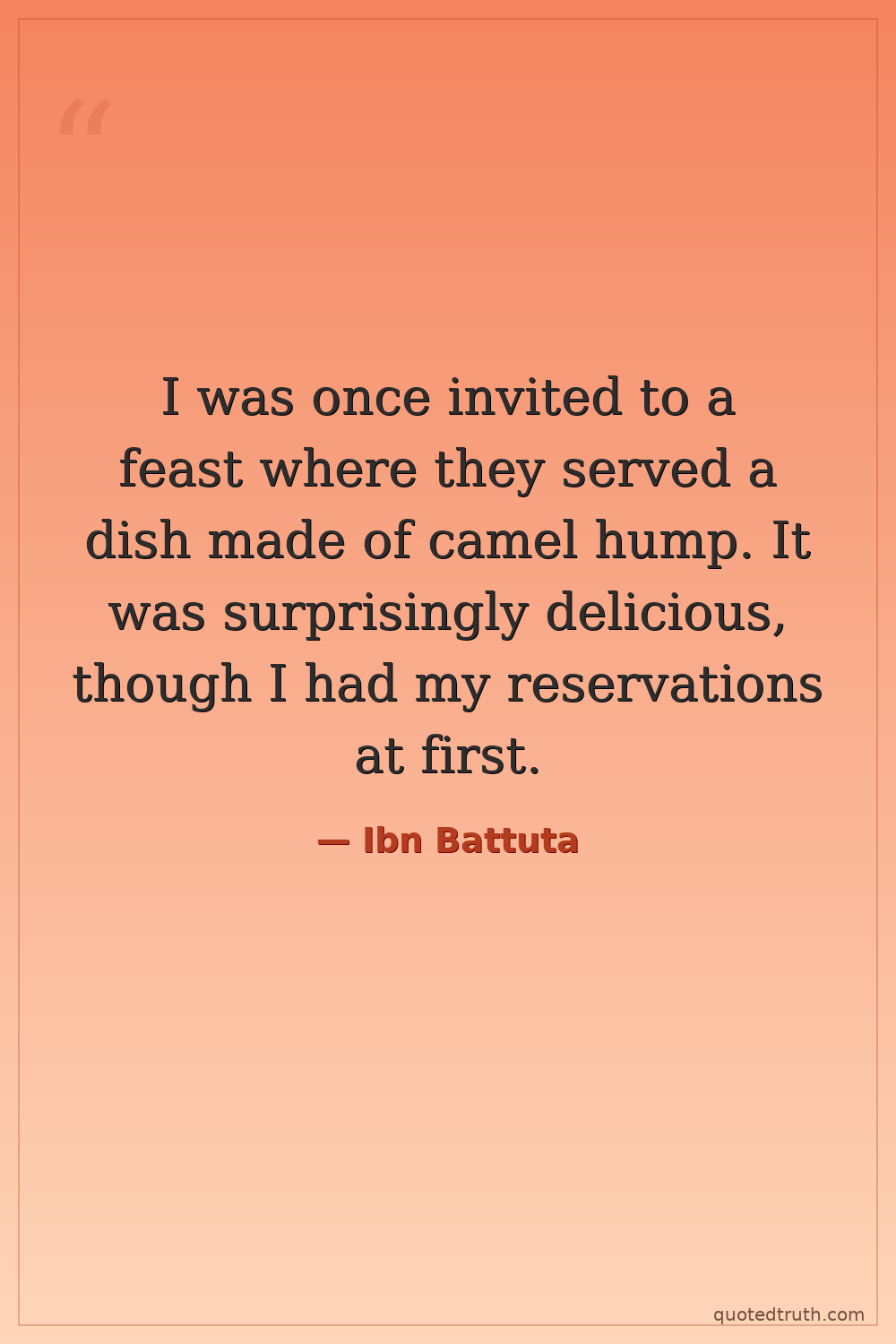 I was once invited to a feast where they served a dish made of camel hump. It was surprisingly delicious, though I had my reservations at first.