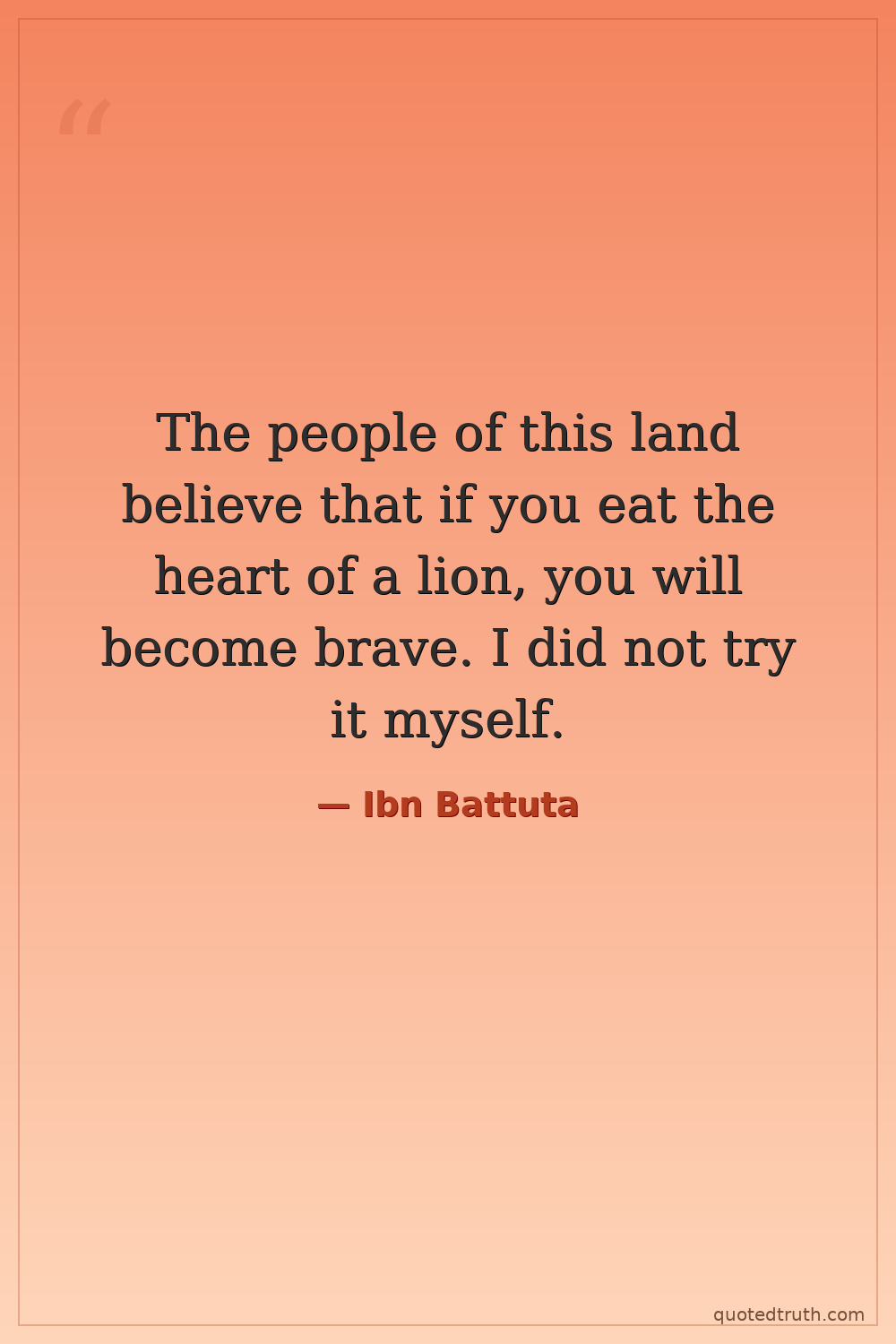 The people of this land believe that if you eat the heart of a lion, you will become brave. I did not try it myself.