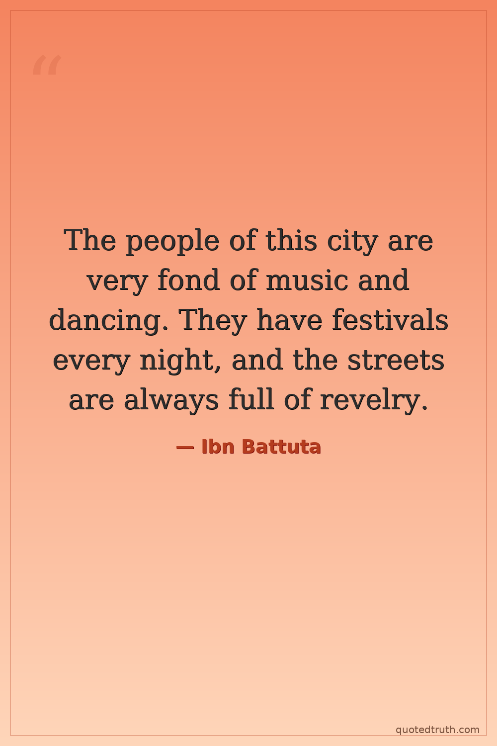 The people of this city are very fond of music and dancing. They have festivals every night, and the streets are always full of revelry.