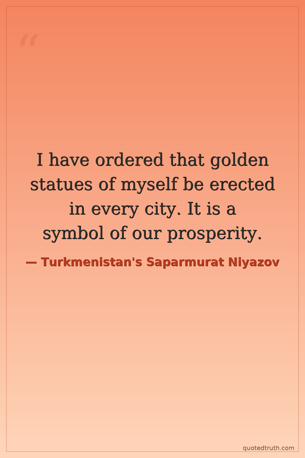 I have ordered that golden statues of myself be erected in every city. It is a symbol of our prosperity.