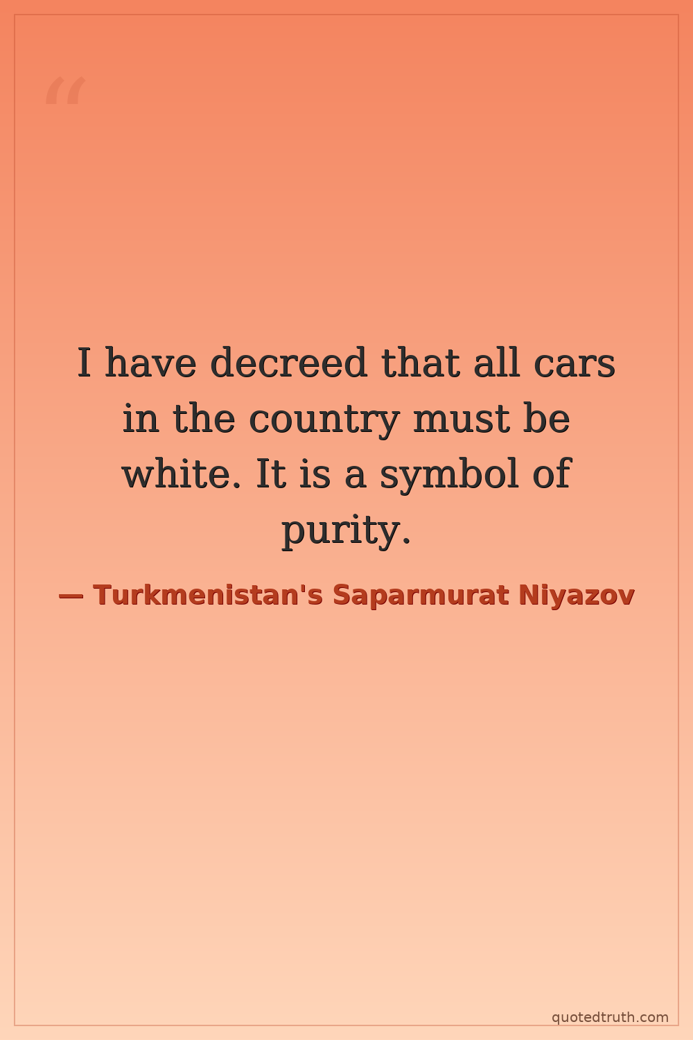 I have decreed that all cars in the country must be white. It is a symbol of purity.