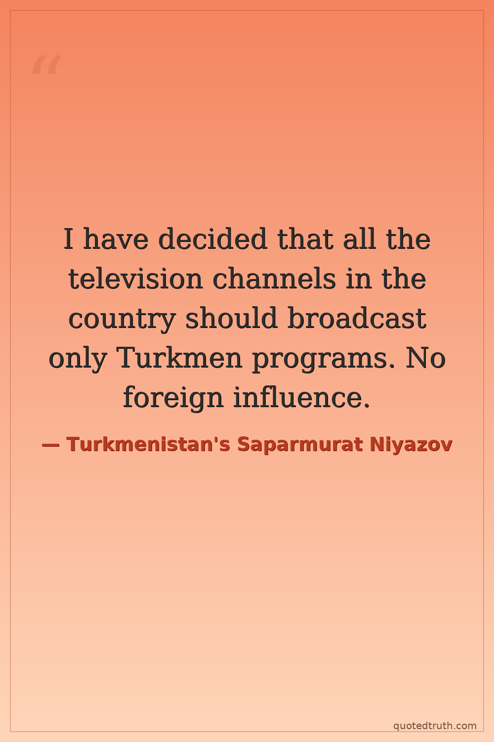 I have decided that all the television channels in the country should broadcast only Turkmen programs. No foreign influence.