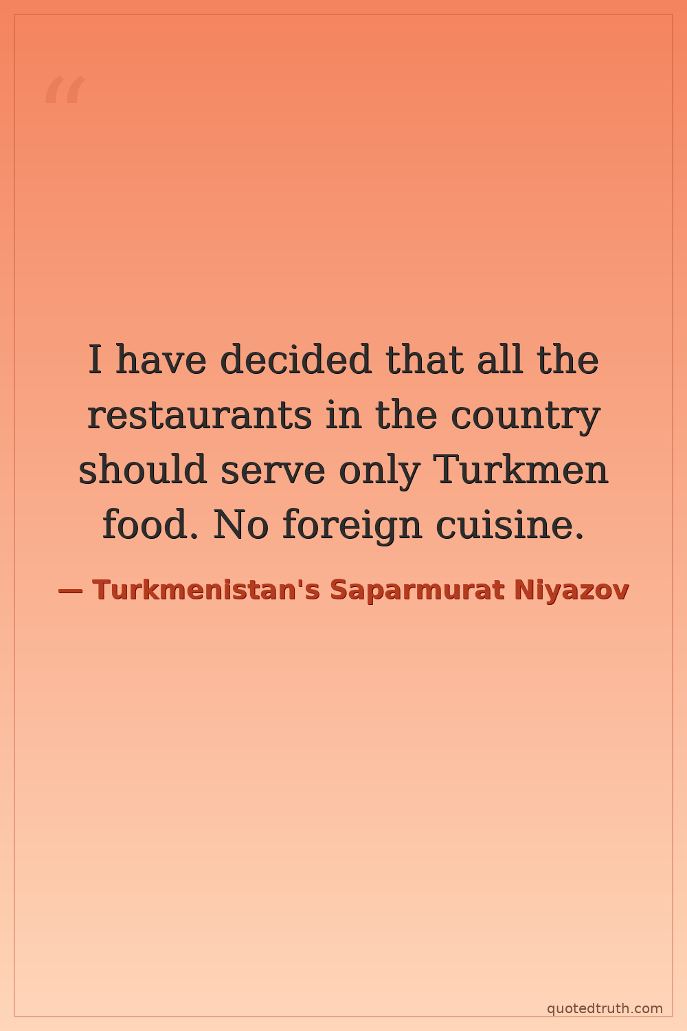 I have decided that all the restaurants in the country should serve only Turkmen food. No foreign cuisine.