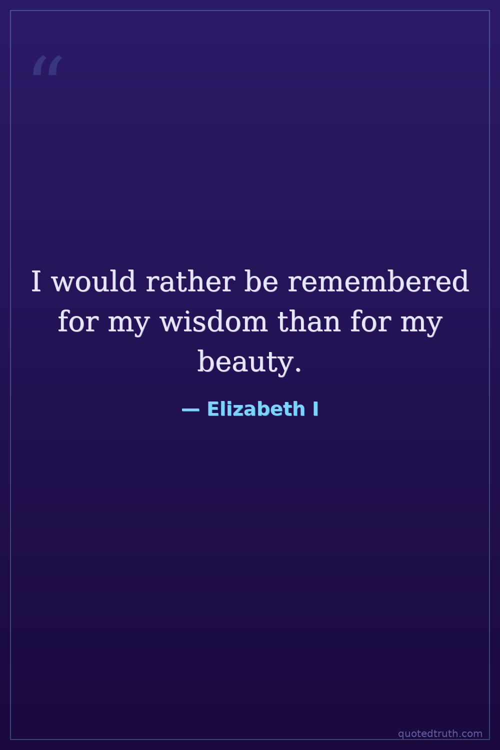 I would rather be remembered for my wisdom than for my beauty.