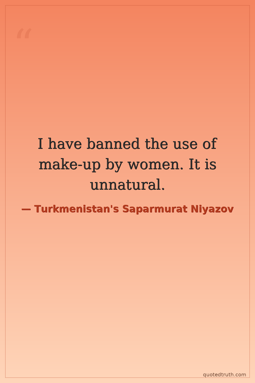 I have banned the use of make-up by women. It is unnatural.