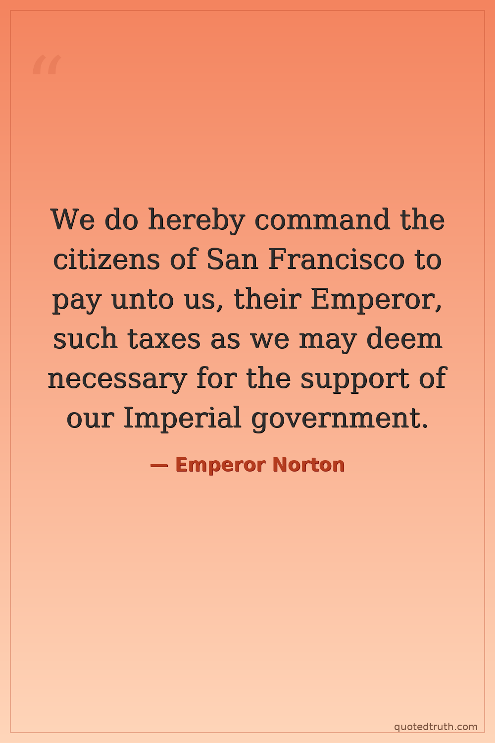 We do hereby command the citizens of San Francisco to pay unto us, their Emperor, such taxes as we may deem necessary for the support of our Imperial government.