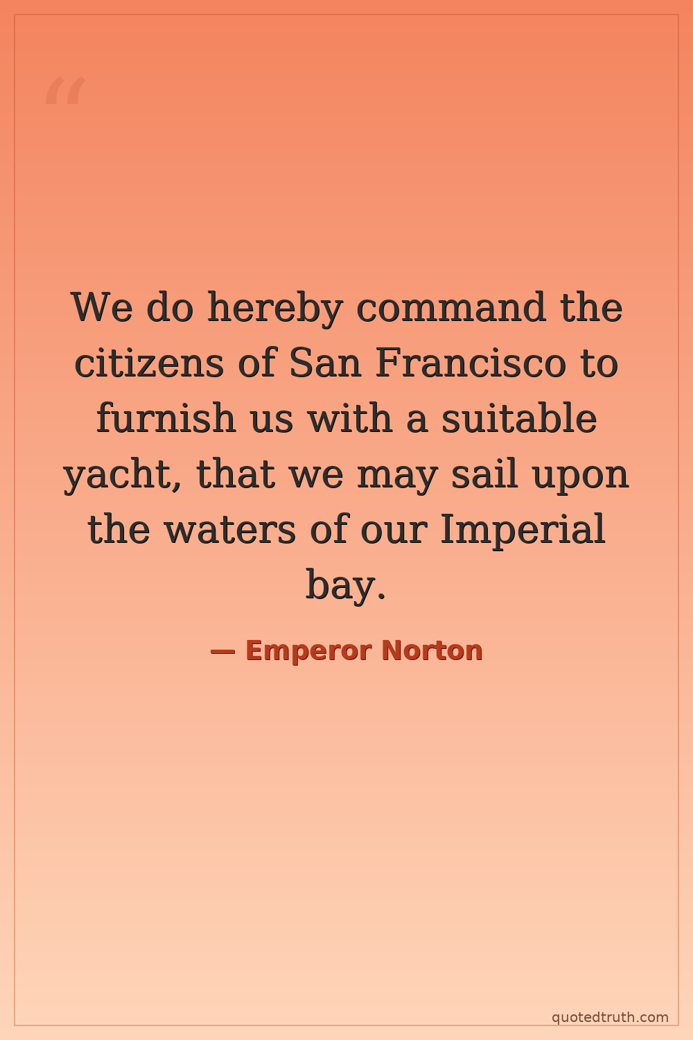 We do hereby command the citizens of San Francisco to furnish us with a suitable yacht, that we may sail upon the waters of our Imperial bay.