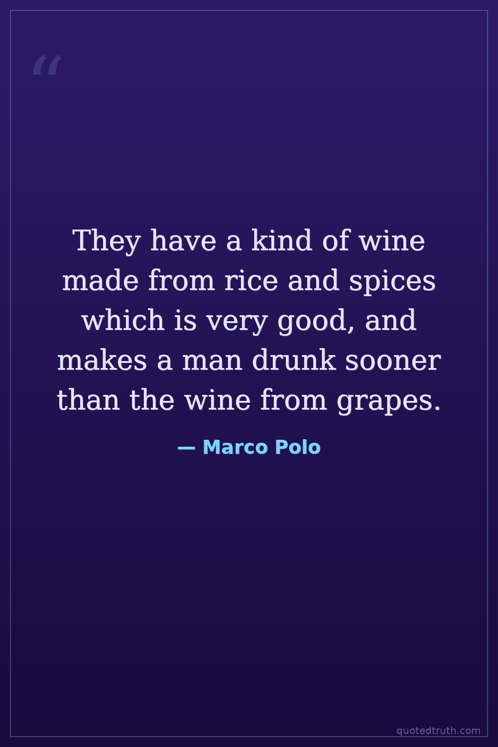They have a kind of wine made from rice and spices which is very good, and makes a man drunk sooner than the wine from grapes.