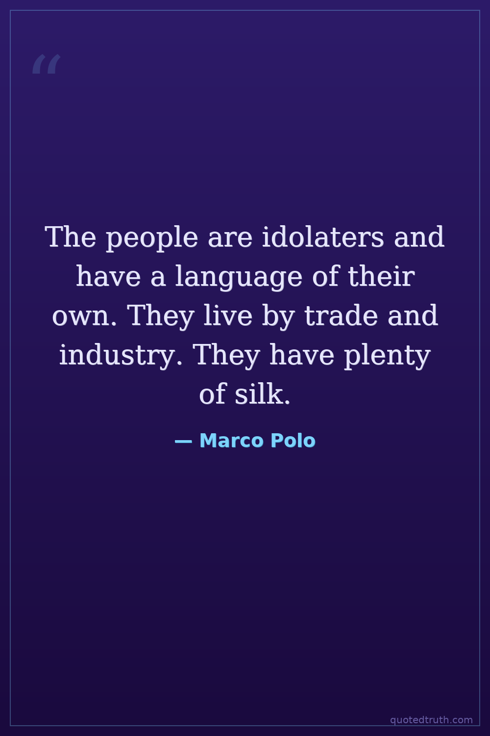 The people are idolaters and have a language of their own. They live by trade and industry. They have plenty of silk.