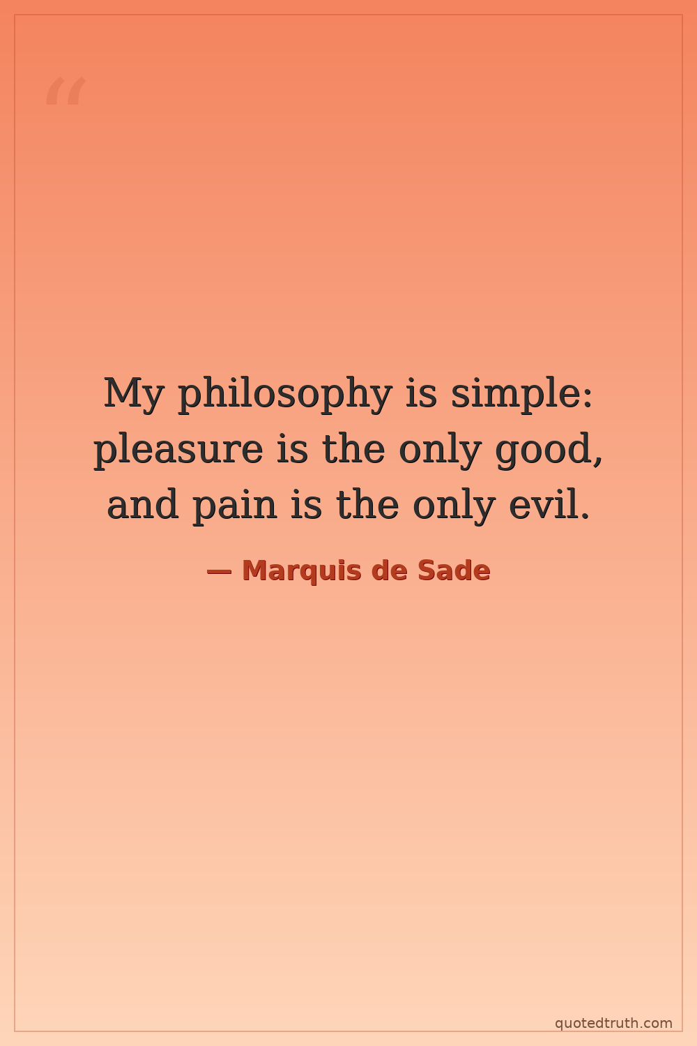 My philosophy is simple: pleasure is the only good, and pain is the only evil.