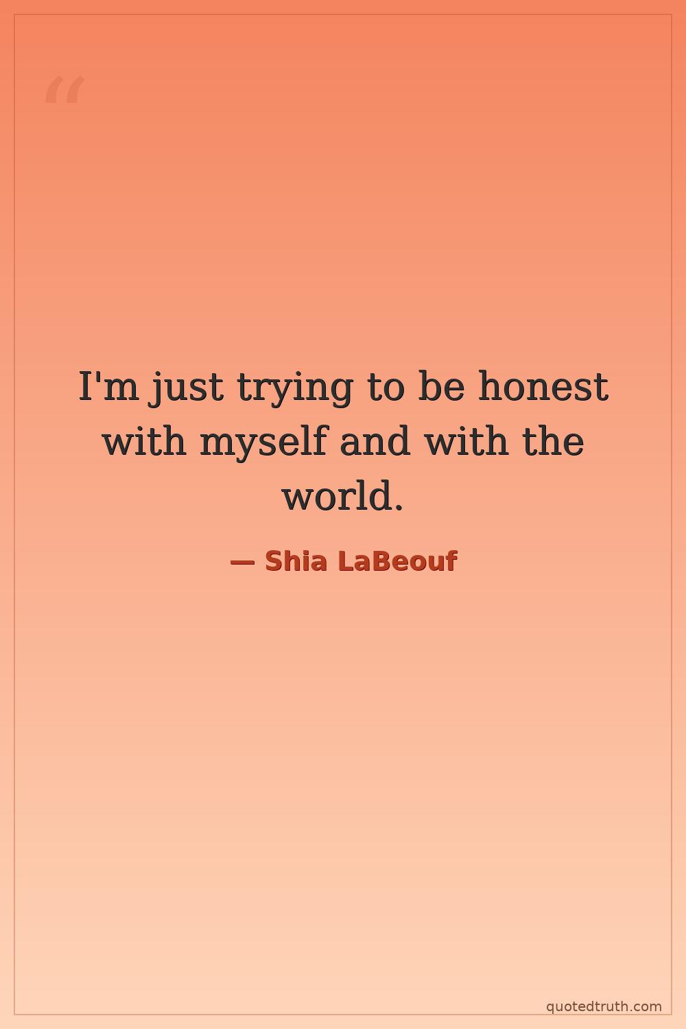 I'm just trying to be honest with myself and with the world.