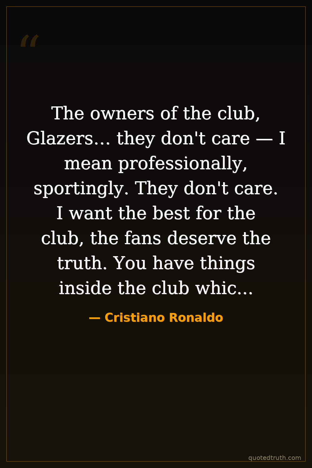 The owners of the club, Glazers… they don't care — I mean professionally, sportingly. They don't care. I want the best for the club, the fans deserve the truth. You have things inside the club which don't help Man Utd reach the top level. — Cristiano Ronaldo Contemporary Soccer star