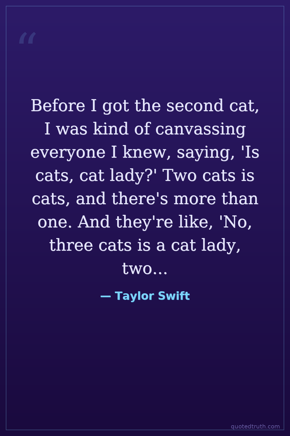 Before I got the second cat, I was kind of canvassing everyone I knew, saying, 'Is cats, cat lady?' Two cats is cats, and there's more than one. And they're like, 'No, three cats is a cat lady, two cats is a party.'