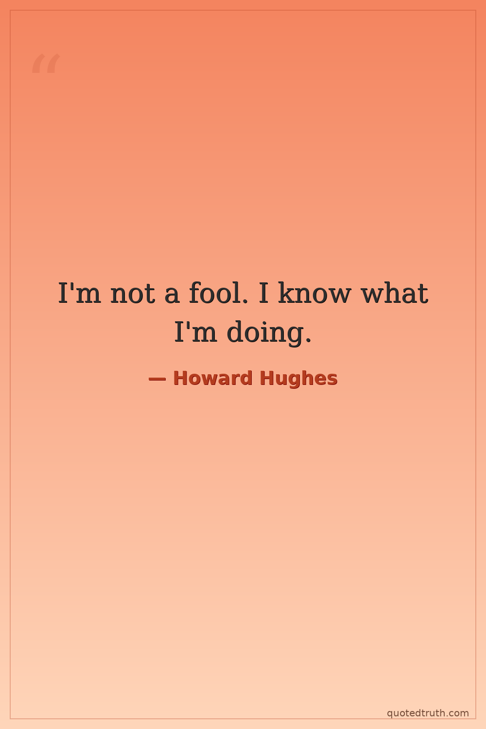 I'm not a fool. I know what I'm doing.