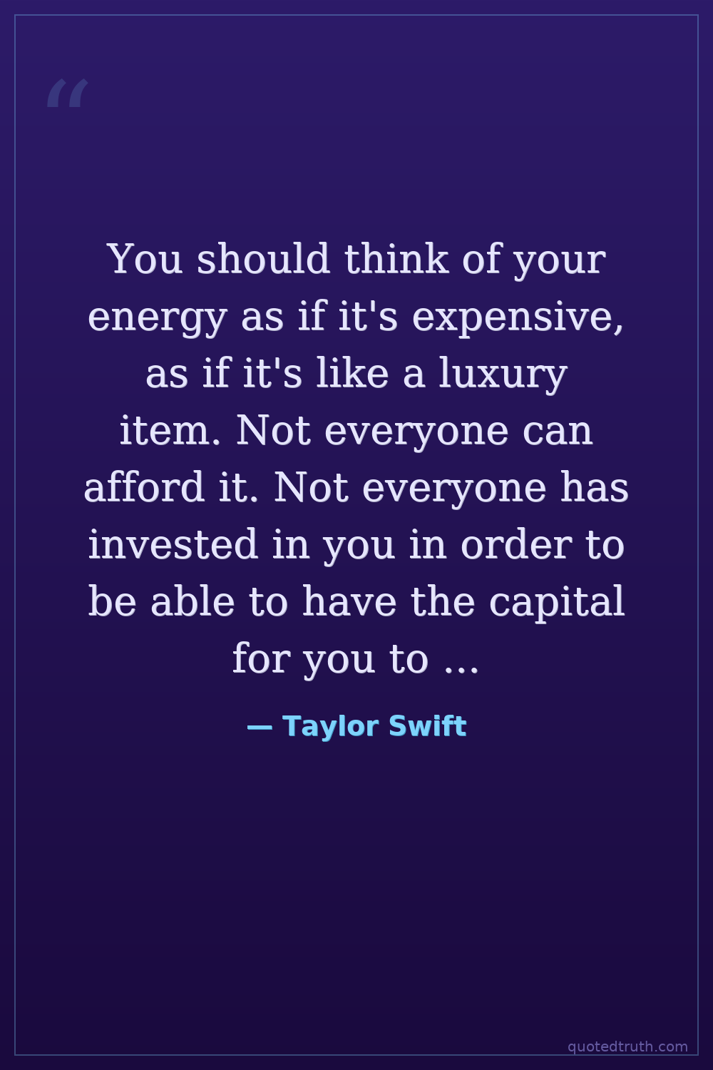 You should think of your energy as if it's expensive, as if it's like a luxury item. Not everyone can afford it. Not everyone has invested in you in order to be able to have the capital for you to care about this.