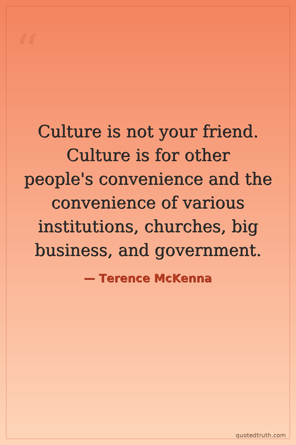 Culture is not your friend. Culture is for other people's convenience and the convenience of various institutions, churches, big business, and government.