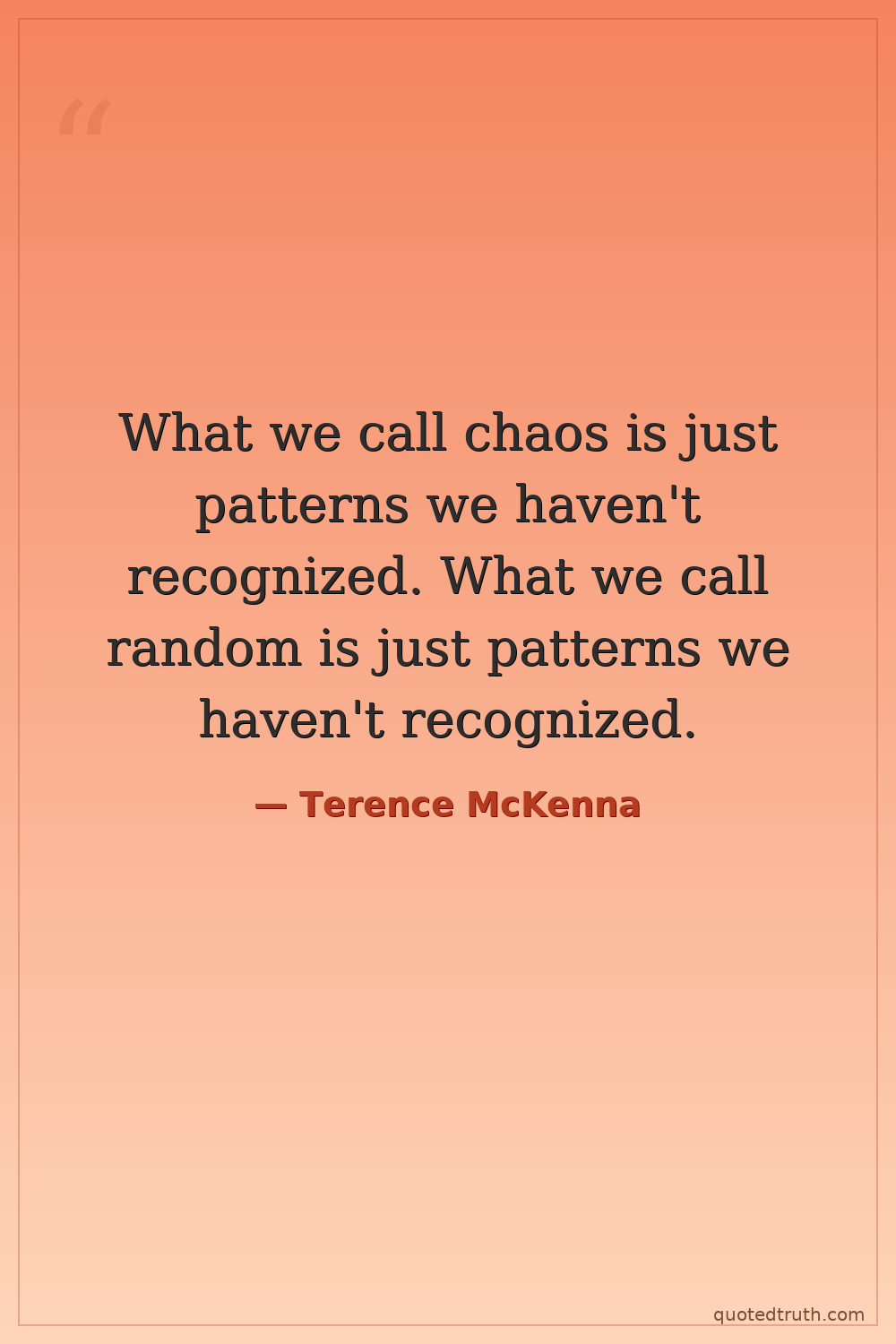 What we call chaos is just patterns we haven't recognized. What we call random is just patterns we haven't recognized.