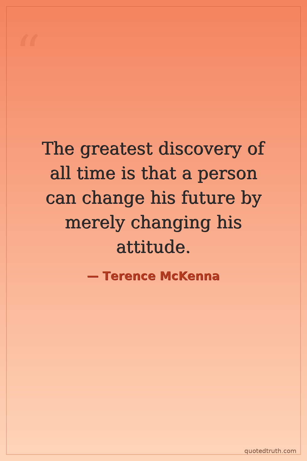The greatest discovery of all time is that a person can change his future by merely changing his attitude.