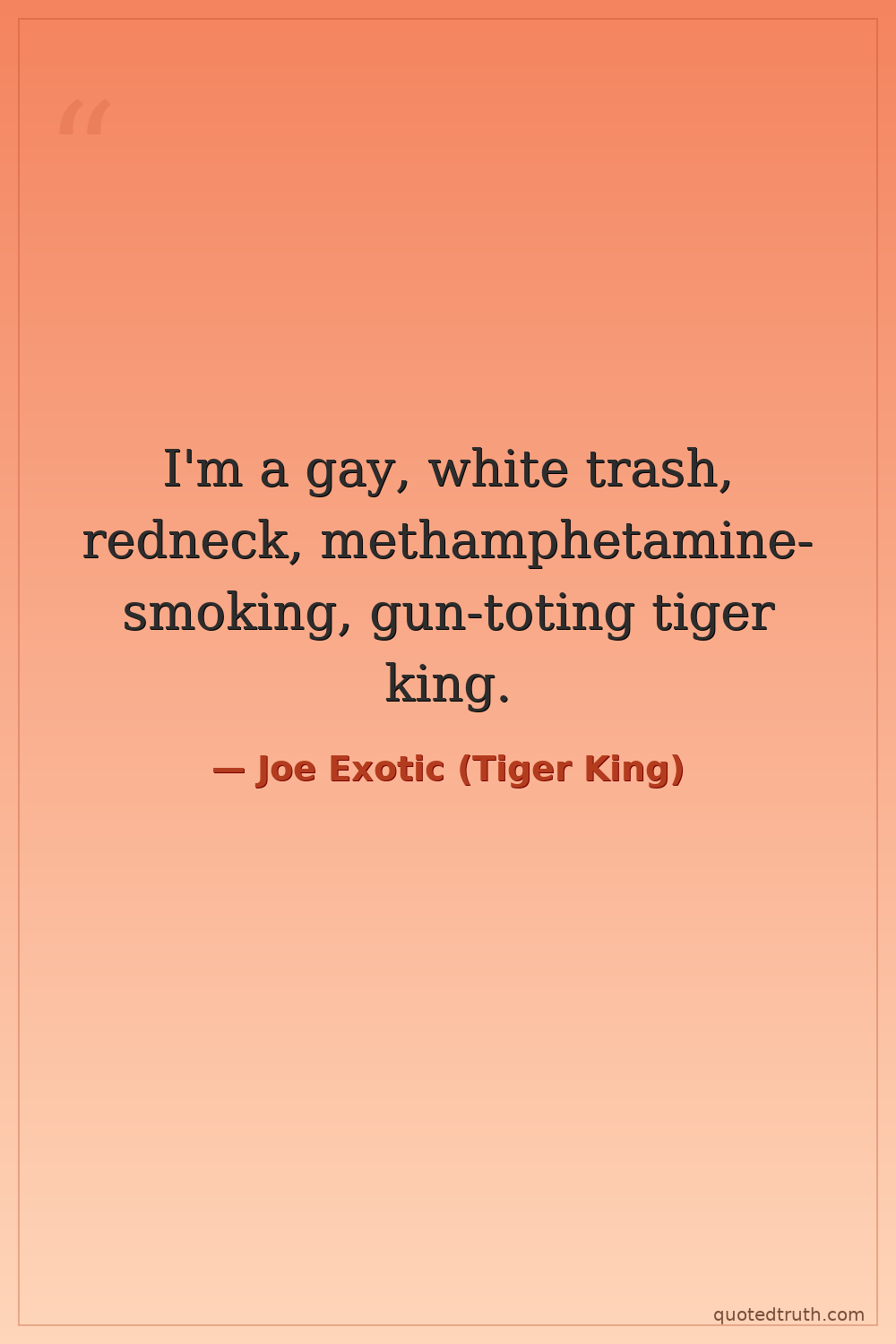I'm a gay, white trash, redneck, methamphetamine-smoking, gun-toting tiger king.