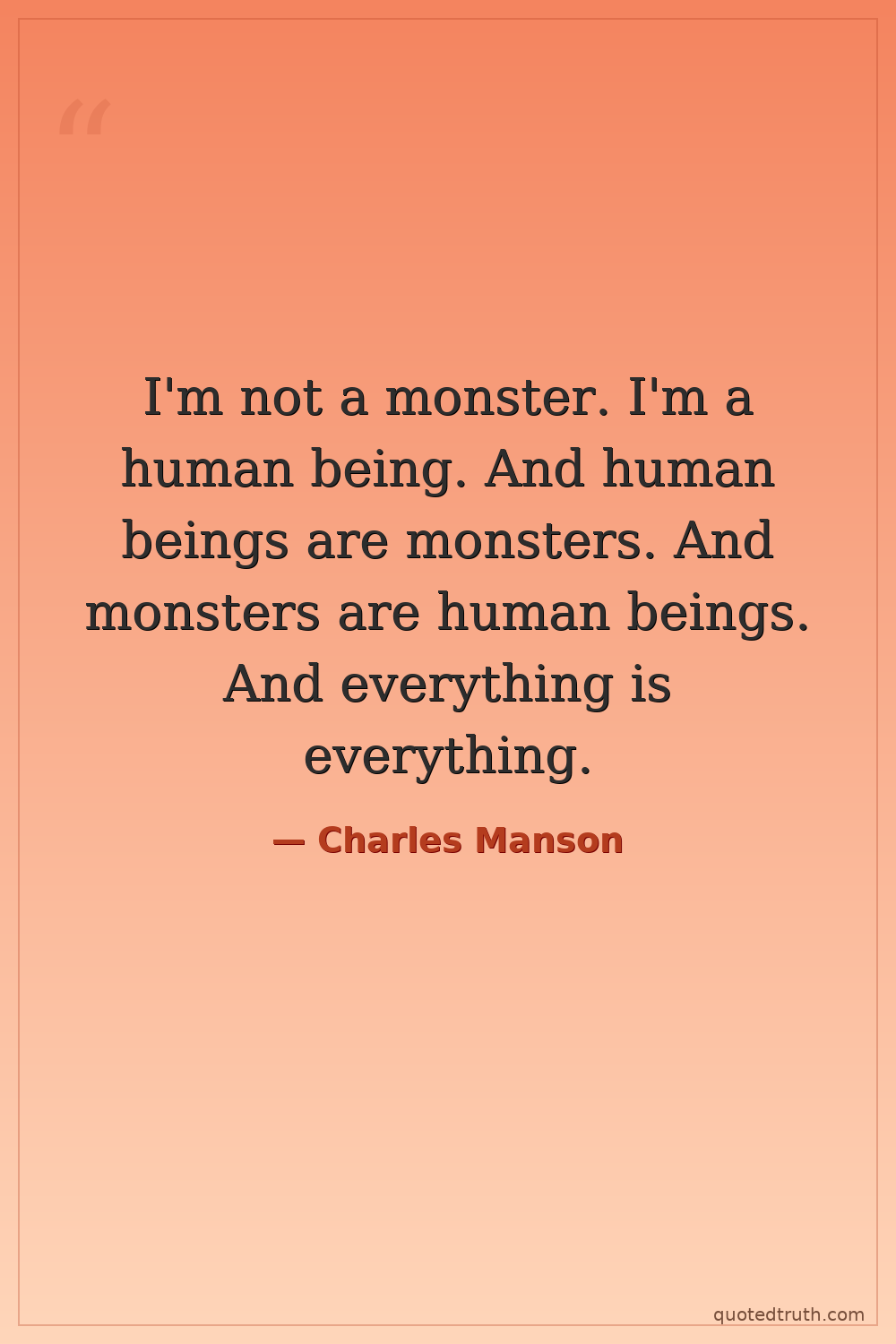 I'm not a monster. I'm a human being. And human beings are monsters. And monsters are human beings. And everything is everything.