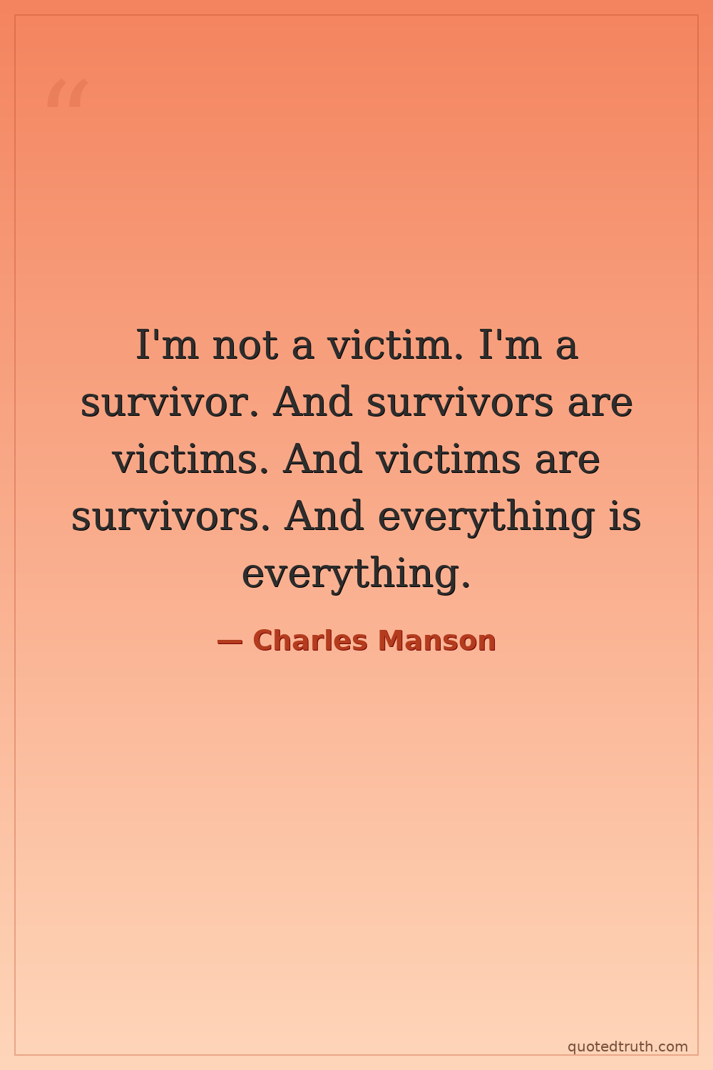 I'm not a victim. I'm a survivor. And survivors are victims. And victims are survivors. And everything is everything.