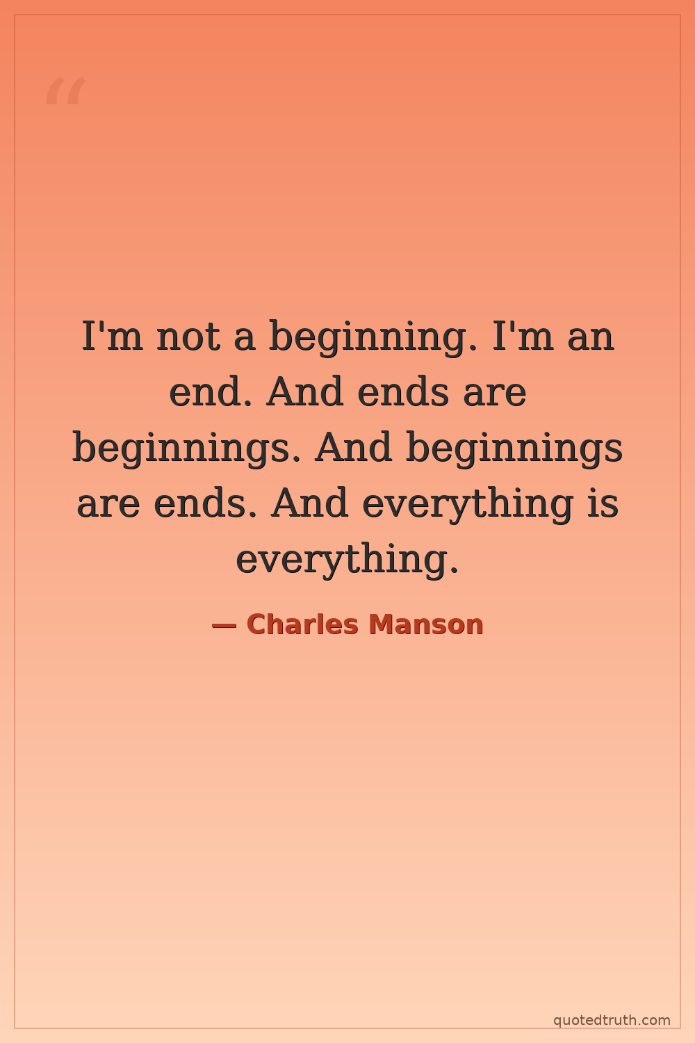 I'm not a beginning. I'm an end. And ends are beginnings. And beginnings are ends. And everything is everything.