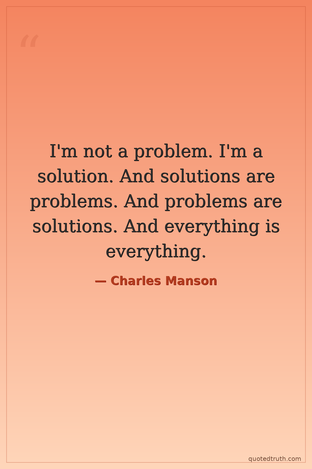 I'm not a problem. I'm a solution. And solutions are problems. And problems are solutions. And everything is everything.