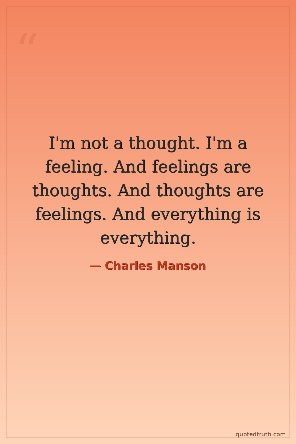I'm not a thought. I'm a feeling. And feelings are thoughts. And thoughts are feelings. And everything is everything.