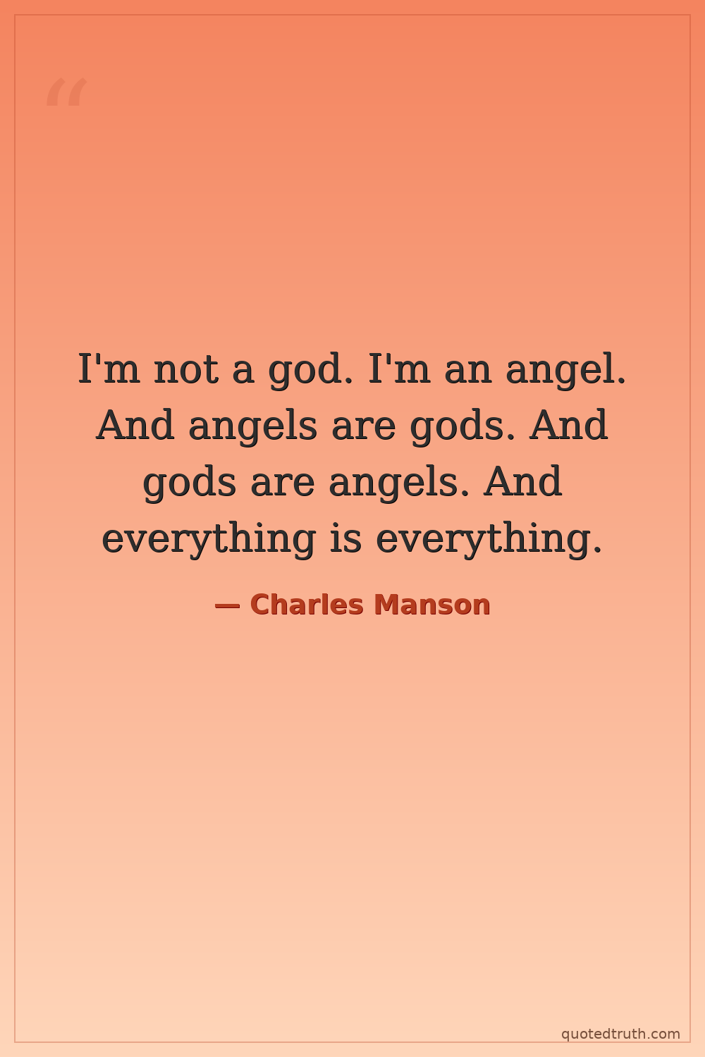 I'm not a god. I'm an angel. And angels are gods. And gods are angels. And everything is everything.