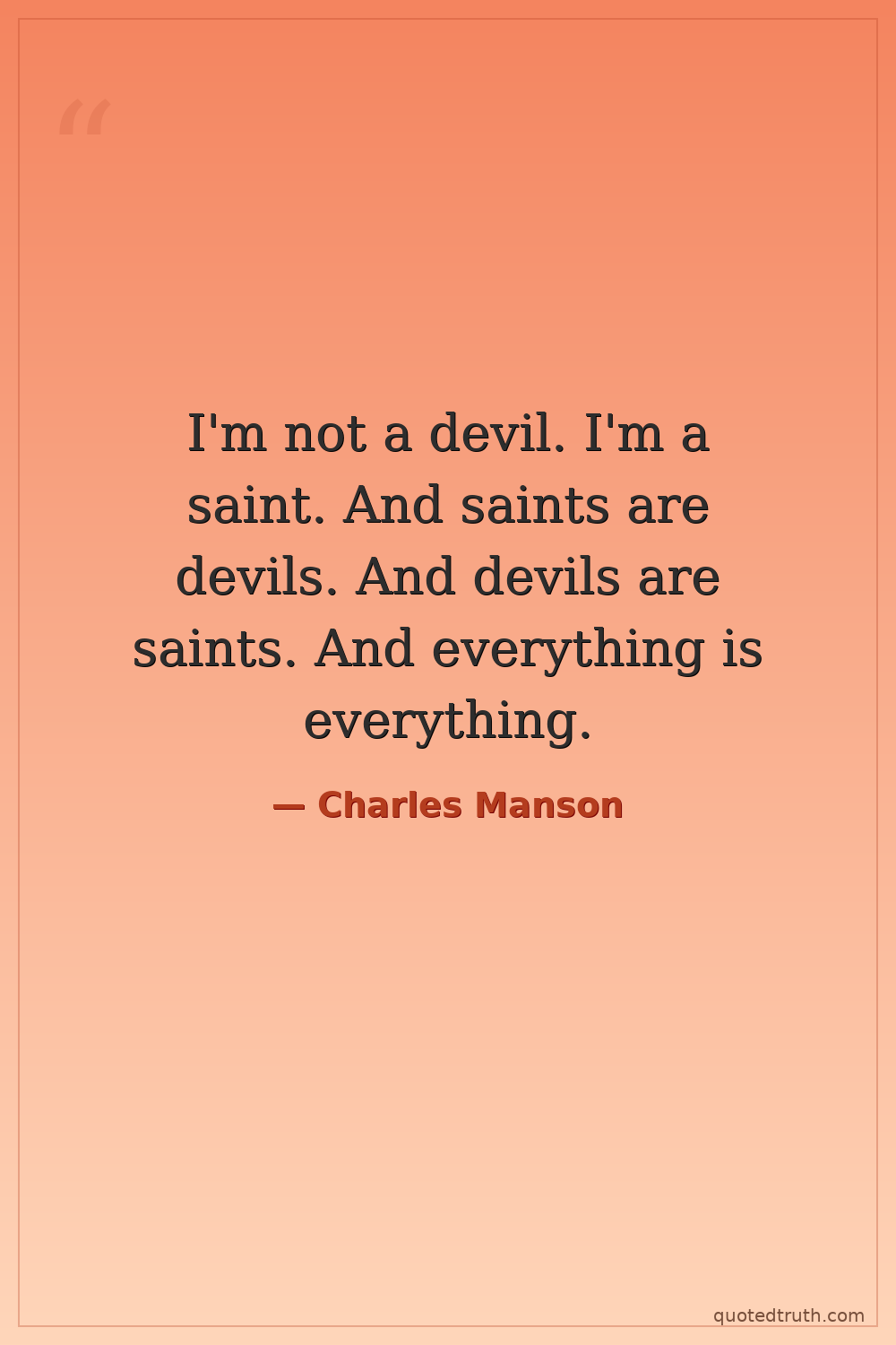 I'm not a devil. I'm a saint. And saints are devils. And devils are saints. And everything is everything.