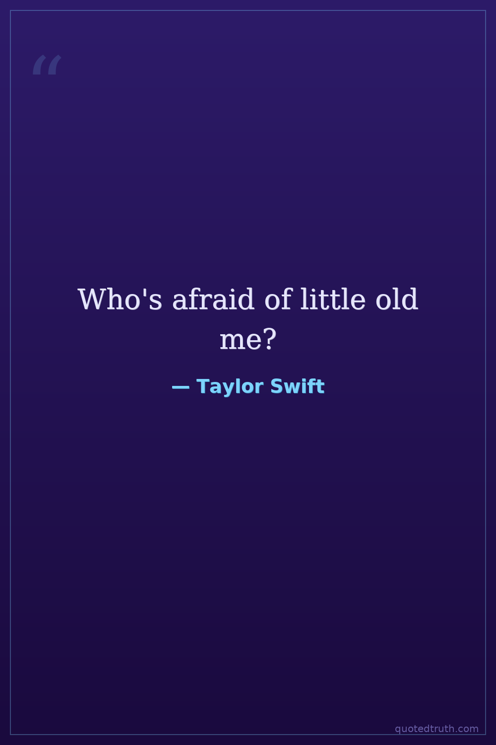 From her song 'Who's Afraid of Little Old Me?', discussing her feelings about fame and being a target.