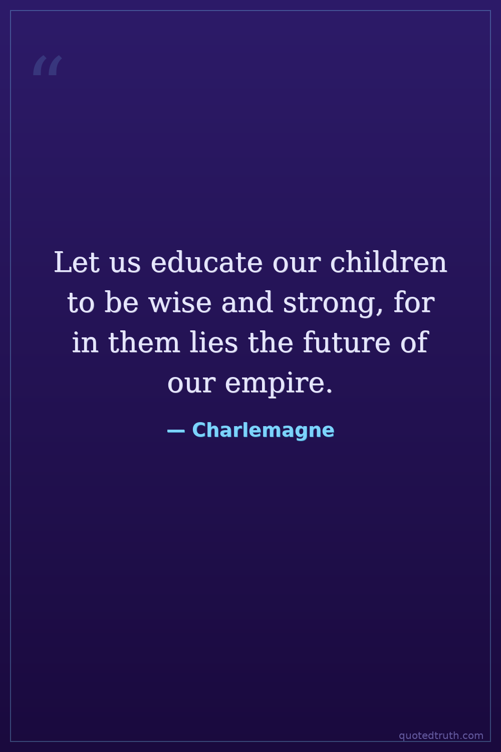 Let us educate our children to be wise and strong, for in them lies the future of our empire.