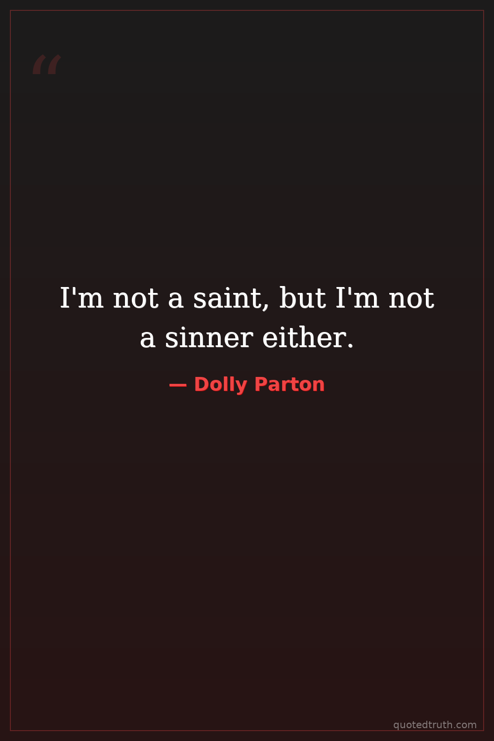 I'm not a saint, but I'm not a sinner either.