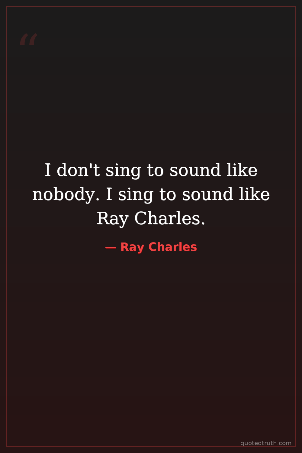 I don't sing to sound like nobody. I sing to sound like Ray Charles.