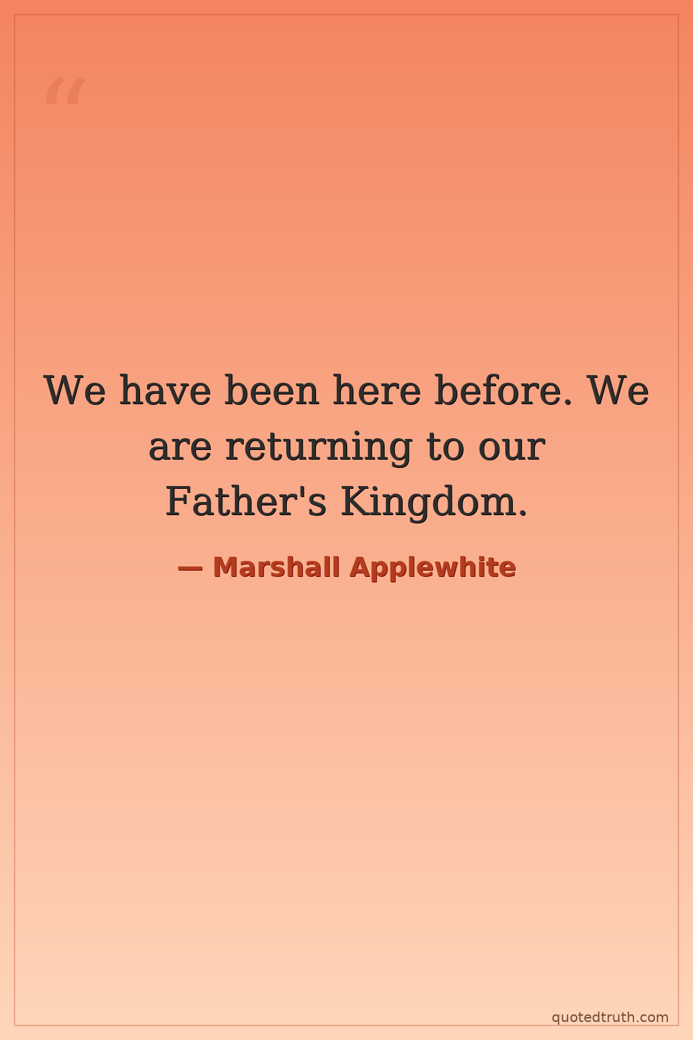We have been here before. We are returning to our Father's Kingdom.
