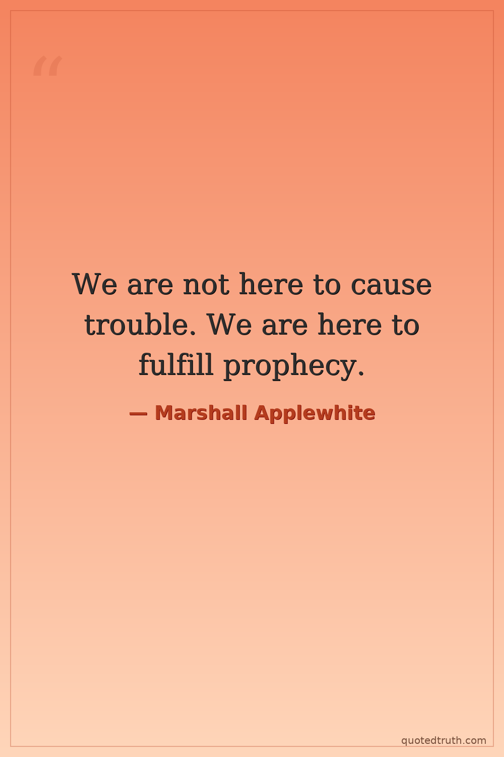 We are not here to cause trouble. We are here to fulfill prophecy.