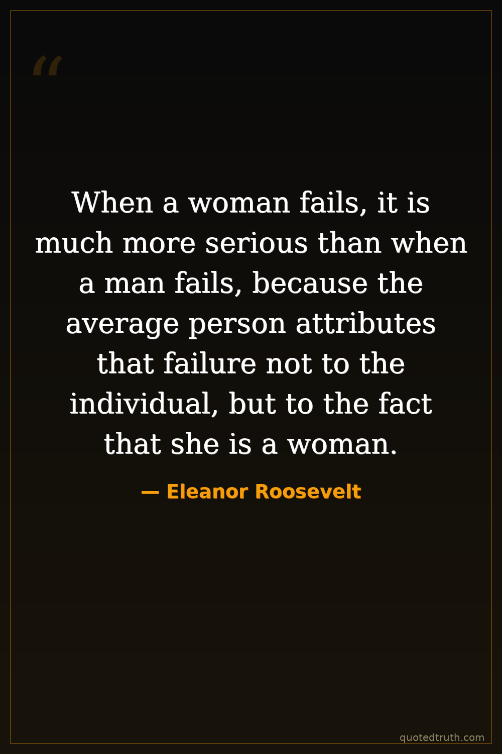 When a woman fails, it is much more serious than when a man fails, because the average person attributes that failure not to the individual, but to the fact that she is a woman.