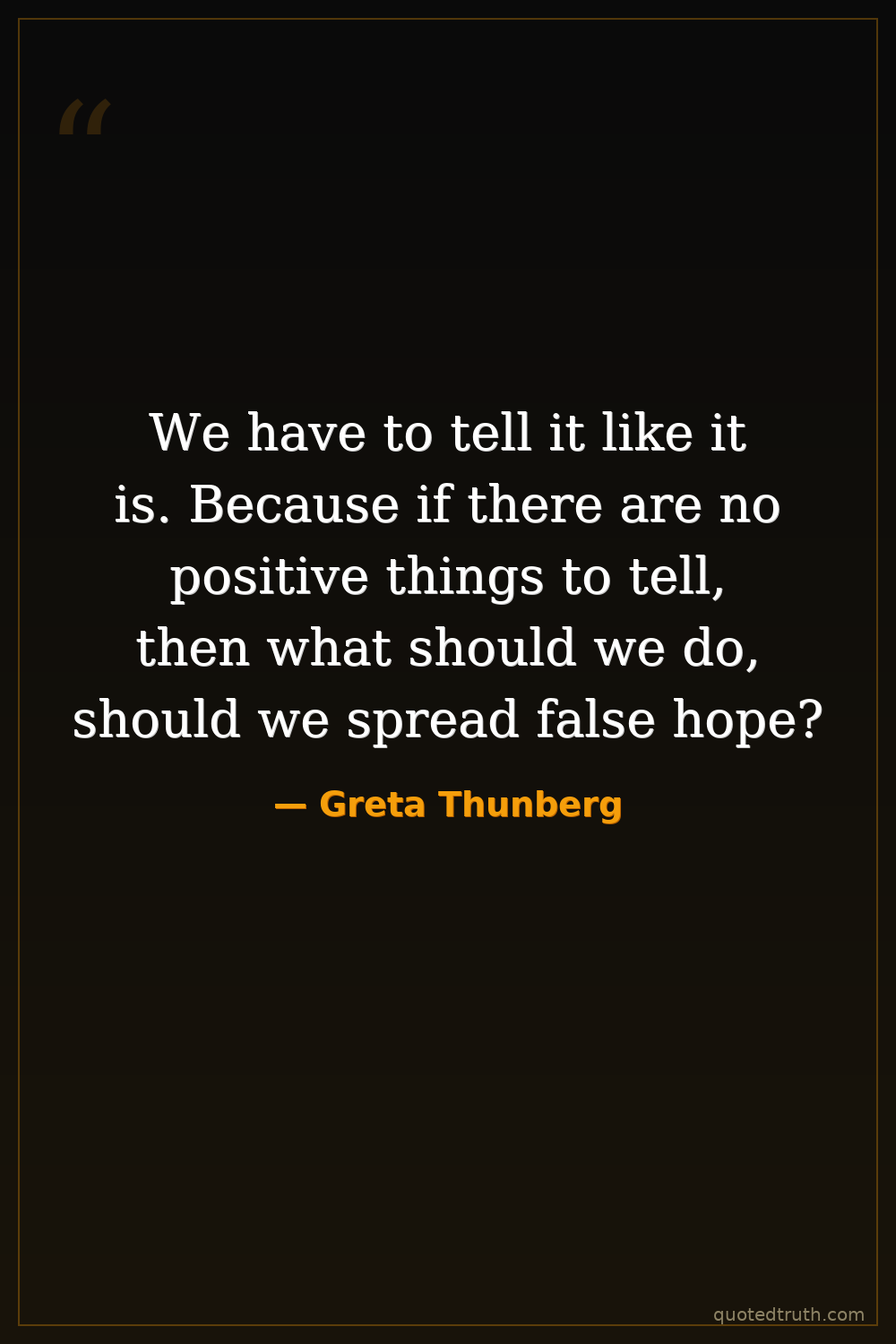 We have to tell it like it is. Because if there are no positive things to tell, then what should we do, should we spread false hope?