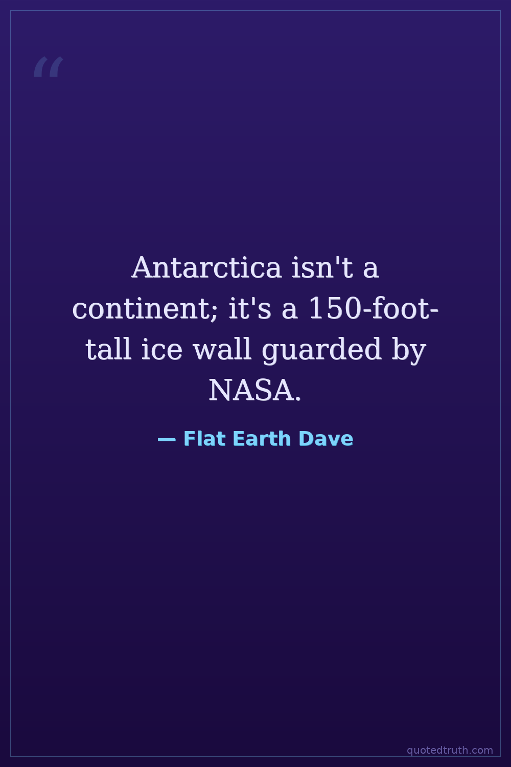 Humorous"Antarctica is not a continent; it's an ice wall surrounding the entire flat Earth, preventing us from falling off."