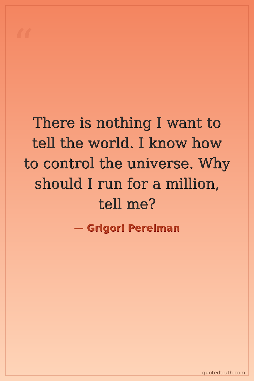 There is nothing I want to tell the world. I know how to control the universe. Why should I run for a million, tell me?
