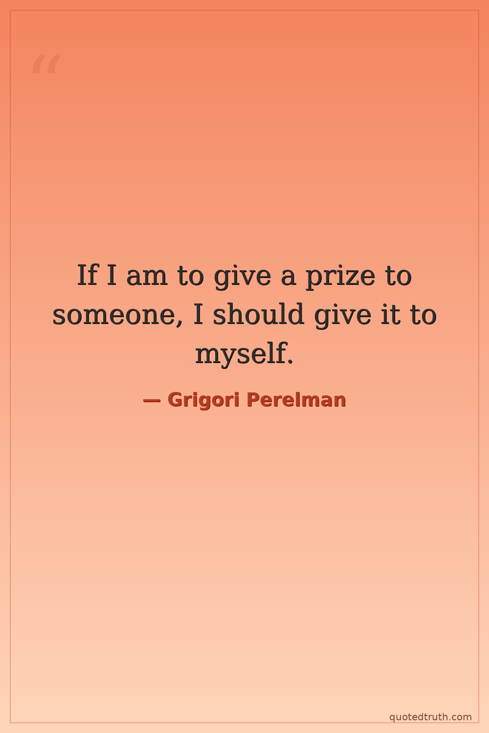 Controversial"I do not think that the mathematical community has the right to decide whether I should accept or reject the prize. I have my own reasons. If my proof is correct, then I don't need any other recogniti…"