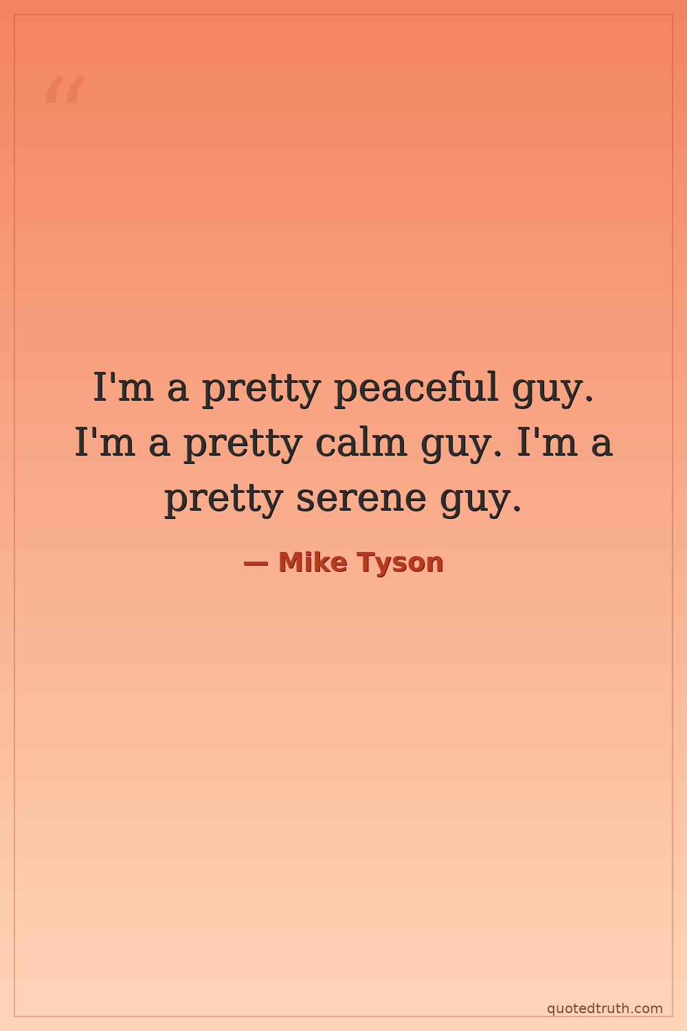 I'm a pretty peaceful guy. I'm a pretty calm guy. I'm a pretty serene guy.