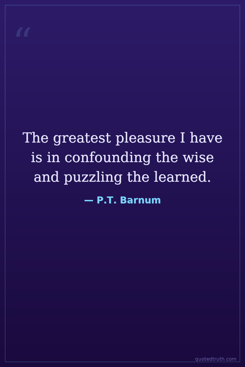 The greatest pleasure I have is in confounding the wise and puzzling the learned.