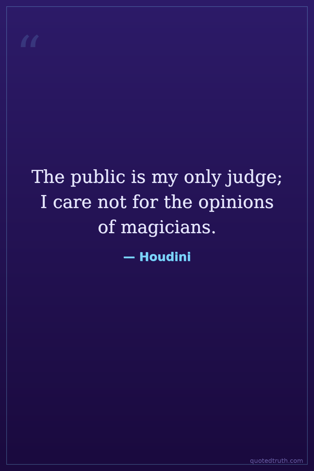 The public is my only judge; I care not for the opinions of magicians.
