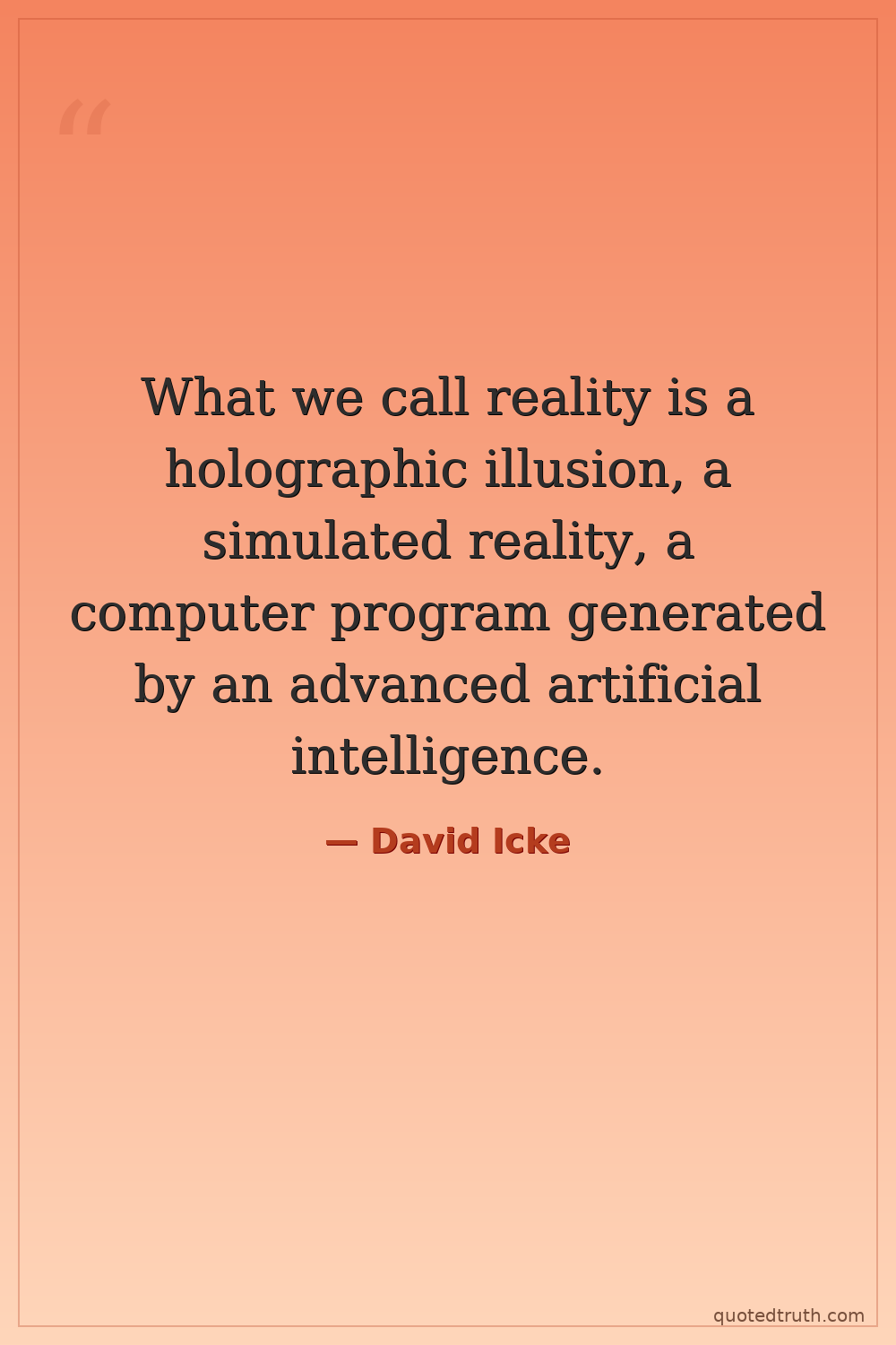 What we call reality is a holographic illusion, a simulated reality, a computer program generated by an advanced artificial intelligence.