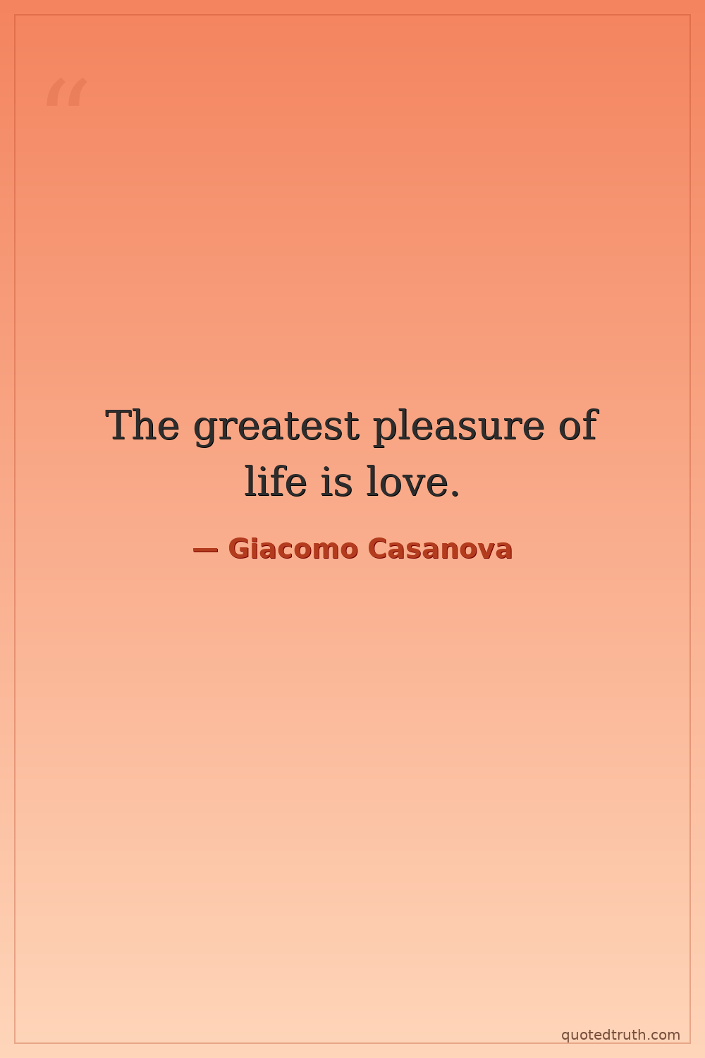 The greatest pleasure of life is love.