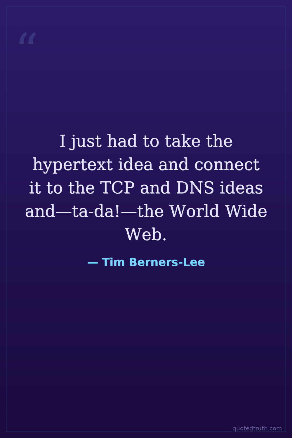 I just had to take the hypertext idea and connect it to the TCP and DNS ideas and—ta-da!—the World Wide Web.