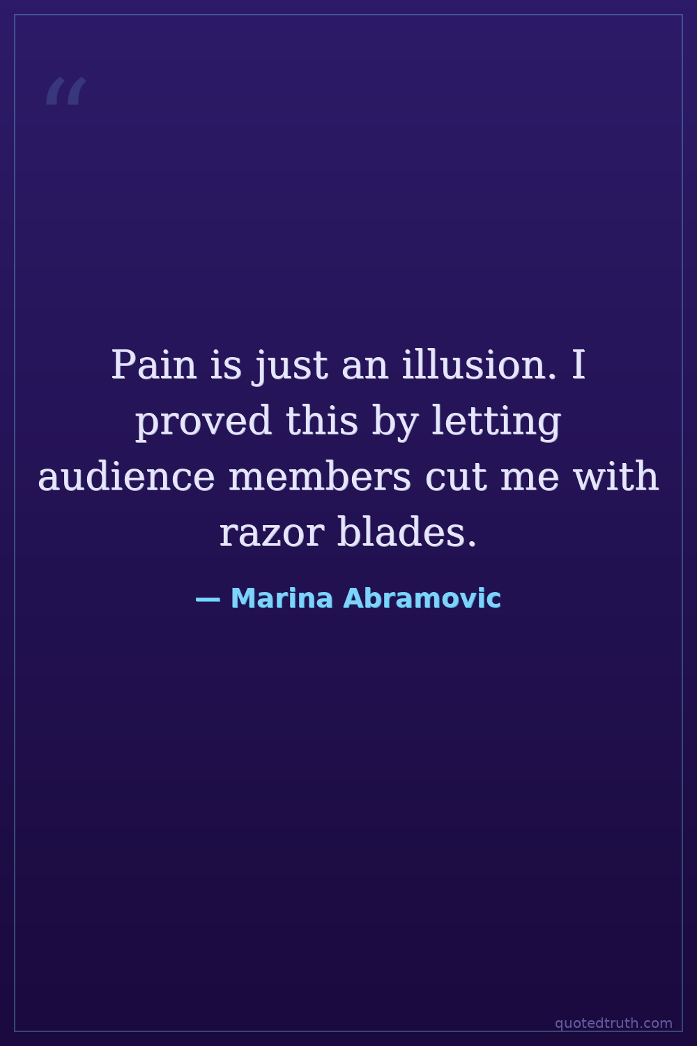 Pain is just an illusion. I proved this by letting audience members cut me with razor blades.