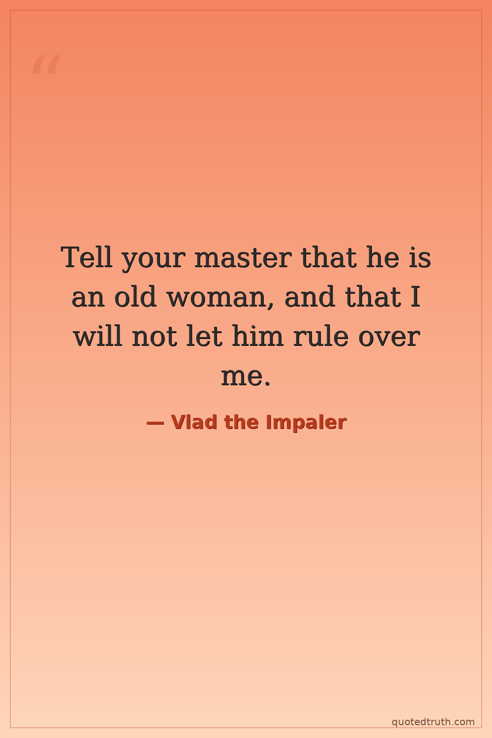 Tell your master that he is an old woman, and that I will not let him rule over me.